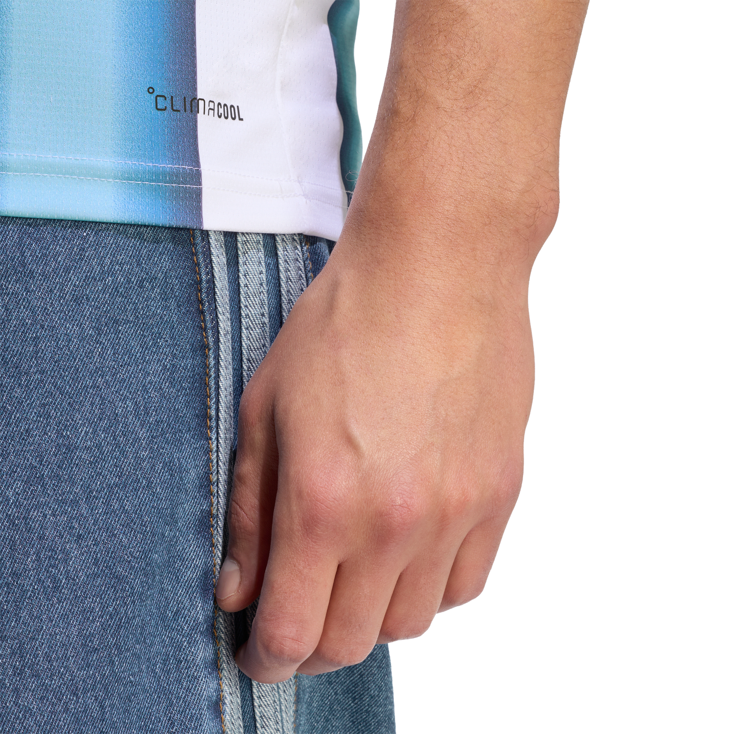 The Argentina 26 Home Messi Jersey is more than just a jersey. It's a celebration of Argentina's football legacy. This jersey marks the first World Cup where the team proudly wears the 3rd star, symbolising their triumphs in '78, '86, and '22. Integrated Climacool fabric technology wicks and disperses your sweat for a cool, dry and distraction-free performance, so you can feel fresh, focused and ready, even during intense matches. With a slim fit, this jersey offers a sleek and athletic look, allowing you to move freely and confidently. The interlock fabric offers durability and comfort, making it a great choice for a range of activities. Embrace the spirit of the World Champions with this jersey. Whether you're on the pitch or cheering from the stands, this jersey connects you to the heart of Argentina's football DNA.