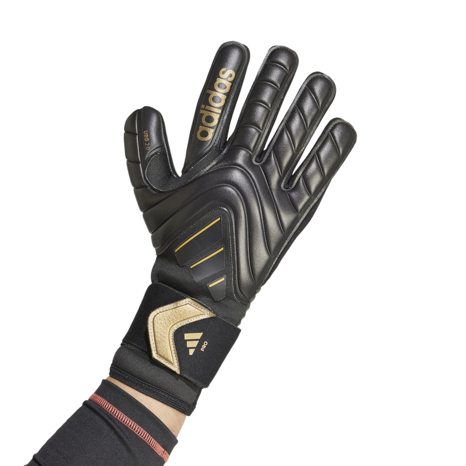 Connect with the ball in a whole new way in a pair of adidas Copa Pro goalkeeper gloves. Their classic latex mesh backhand and stretchy wrist strap combine for a comfortable fit. Created for game-changing grip, the URG 2.0 palm includes an abrasion zone for extra durability. A negative cut keeps things snug around the fingers for a close, natural-feeling fit.