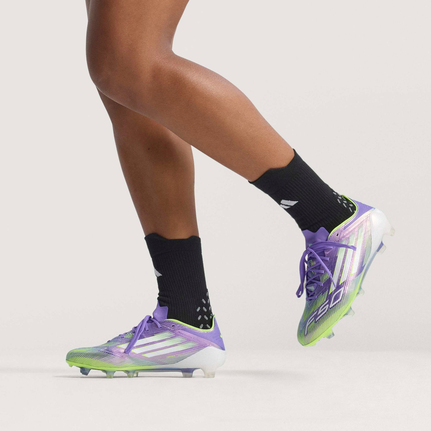 Find your fast to truly express yourself on the field. Feel the rush in adidas F50 boots engineered for speed. These Elite football boots have a thin Fibertouch upper with a Compression Fit Tunnel Tongue for lockdown and a Sprintweb 3D texture to help keep the ball close when you're flying. Designed for dry grass pitches, the springy Sprintframe 360 outsole supports relentless pace.