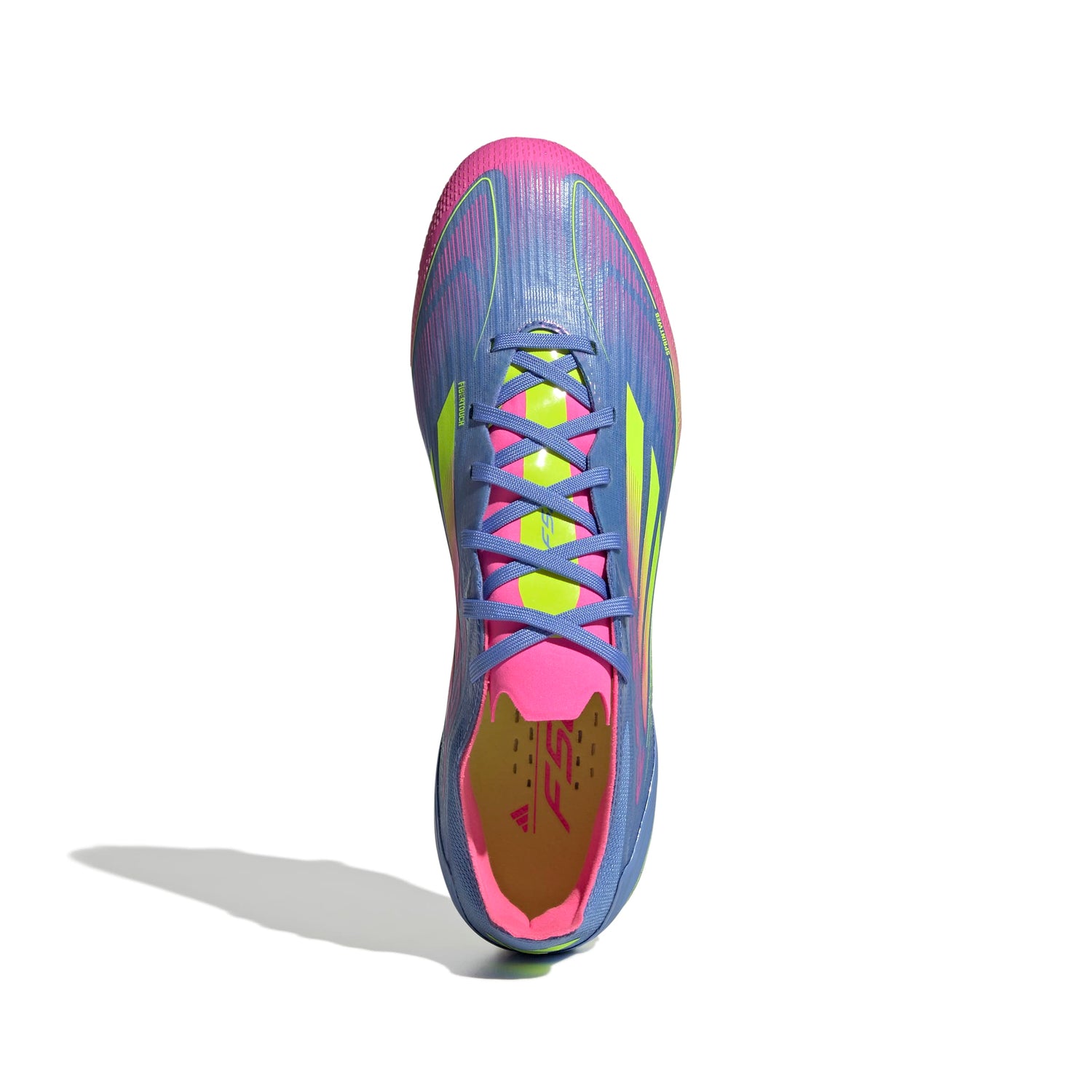 Push your pace to the limit in lightweight adidas F50 footwear engineered for speed. These Pro football boots employ a lightweight Fibertouch upper with Sprintweb 3D texturing for agile dribbling, and a Compression Fit Tunnel Tongue for rock-solid lockdown. The Sprintshell 360 outsole on which they sit is optimised to keep you super-quick on firm ground pitches. This product features at least 20% recycled materials. By reusing materials that have already been created, we help to reduce waste and our reliance on finite resources and reduce the footprint of the products we make.