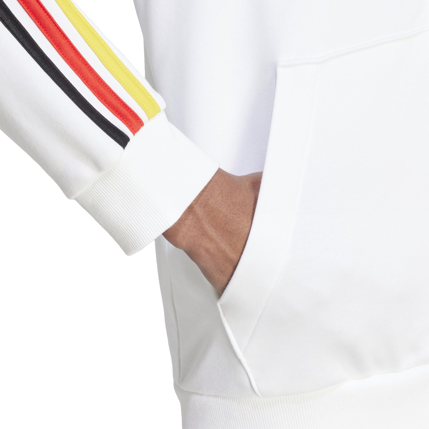 Germany through and through. Whether you're watching your heroes live or showing your support from home, this adidas football hoodie keeps team pride close. Soft French terry means all-day cosiness, while those flag-inspired 3-Stripes on the shoulders and woven crest over the heart display your passion.By choosing recycled, we are able to reuse materials that have already been created, which helps to reduce waste. Renewable materials choices will help us to remove our reliance on finite resources. Our products made with a blend of recycled and renewable materials feature at least 70% total of these materials.