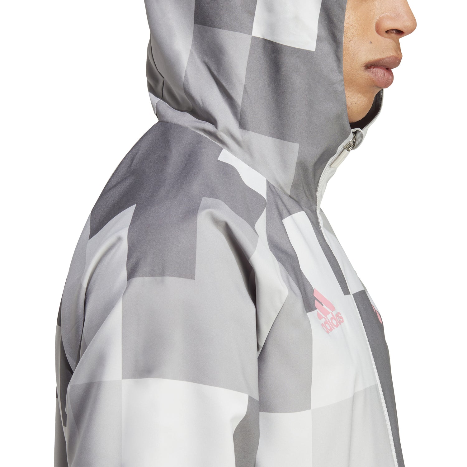 Take shelter in an adidas windbreaker inspired by Juventus' home. That bold, blocky graphic will be familiar to anyone who's taken a stroll around the exterior of the Allianz Stadium. Once on, this jacket's slim fit and tough woven shell will keep you ploughing ahead on breezy days. Standing out on the chest, a vibrant team badge carries your football pride.