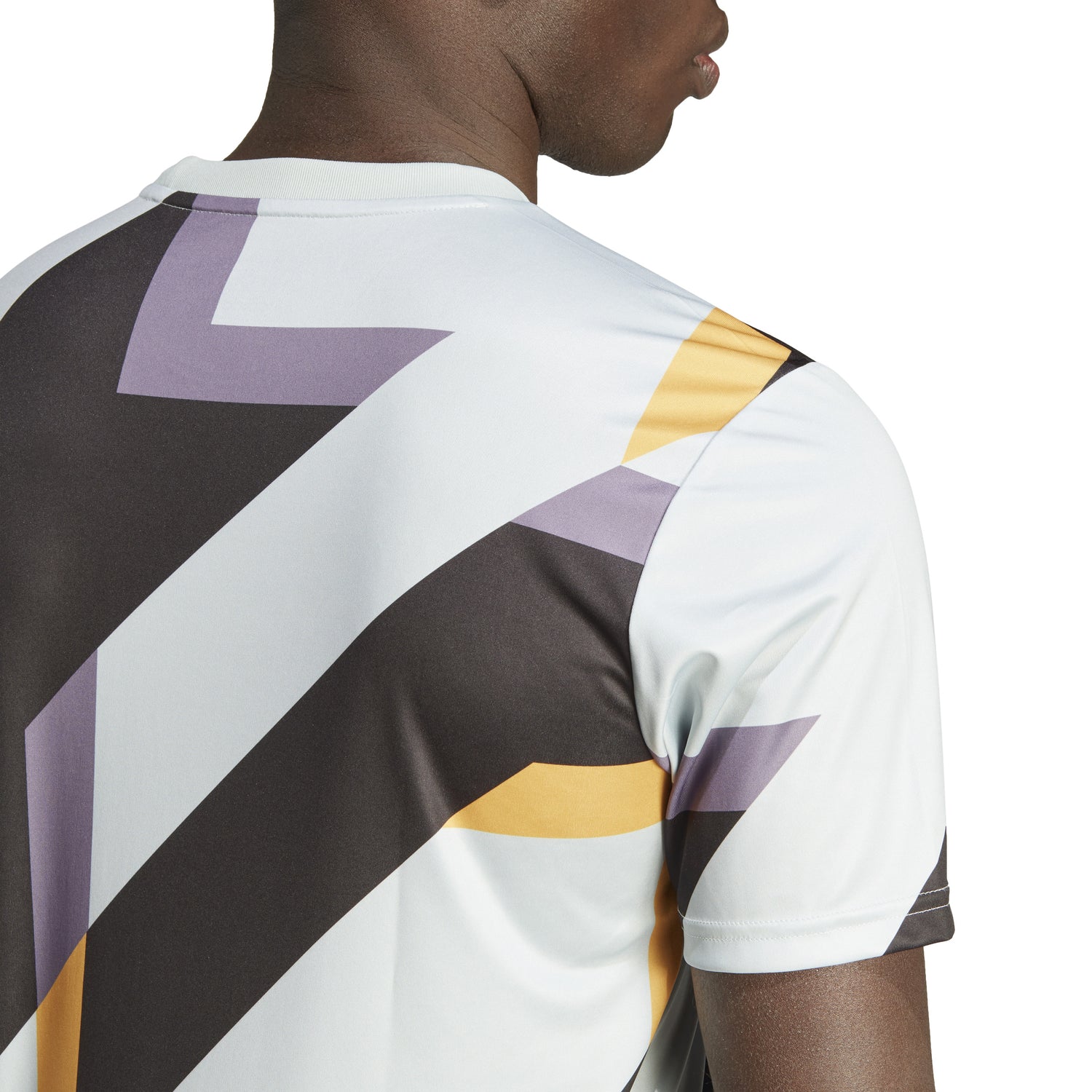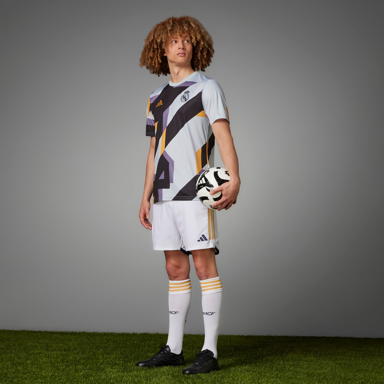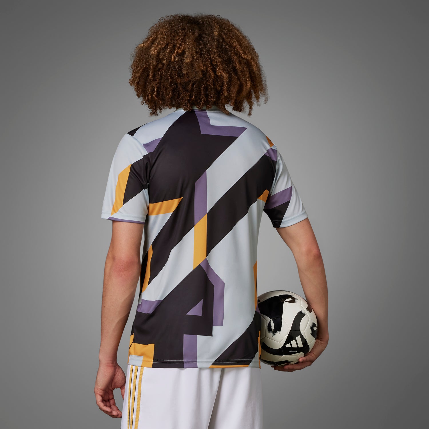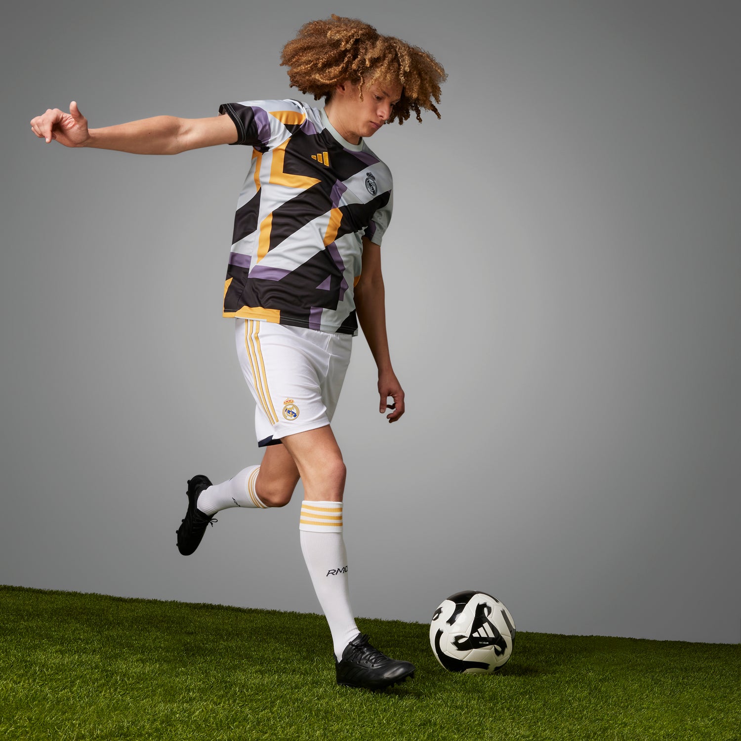Real Madrid don't just play with style, they warm up in style too. Taking inspiration from the city of Madrid, a bold 'R' & 'M' is executed in an oversized, houndstooth pattern, delivering a larger-than-life, color-blocked design. With a wearable fit and a bespoke graphic, this top is a head-turning way to show off your winning mentality and passion for the club. Striking colors keep a clean link to the away jersey and soft, moisture-wicking AEROREADY fabric helps you stay focused whether you find yourself gearing up for an international match — or your local 5-a-side.