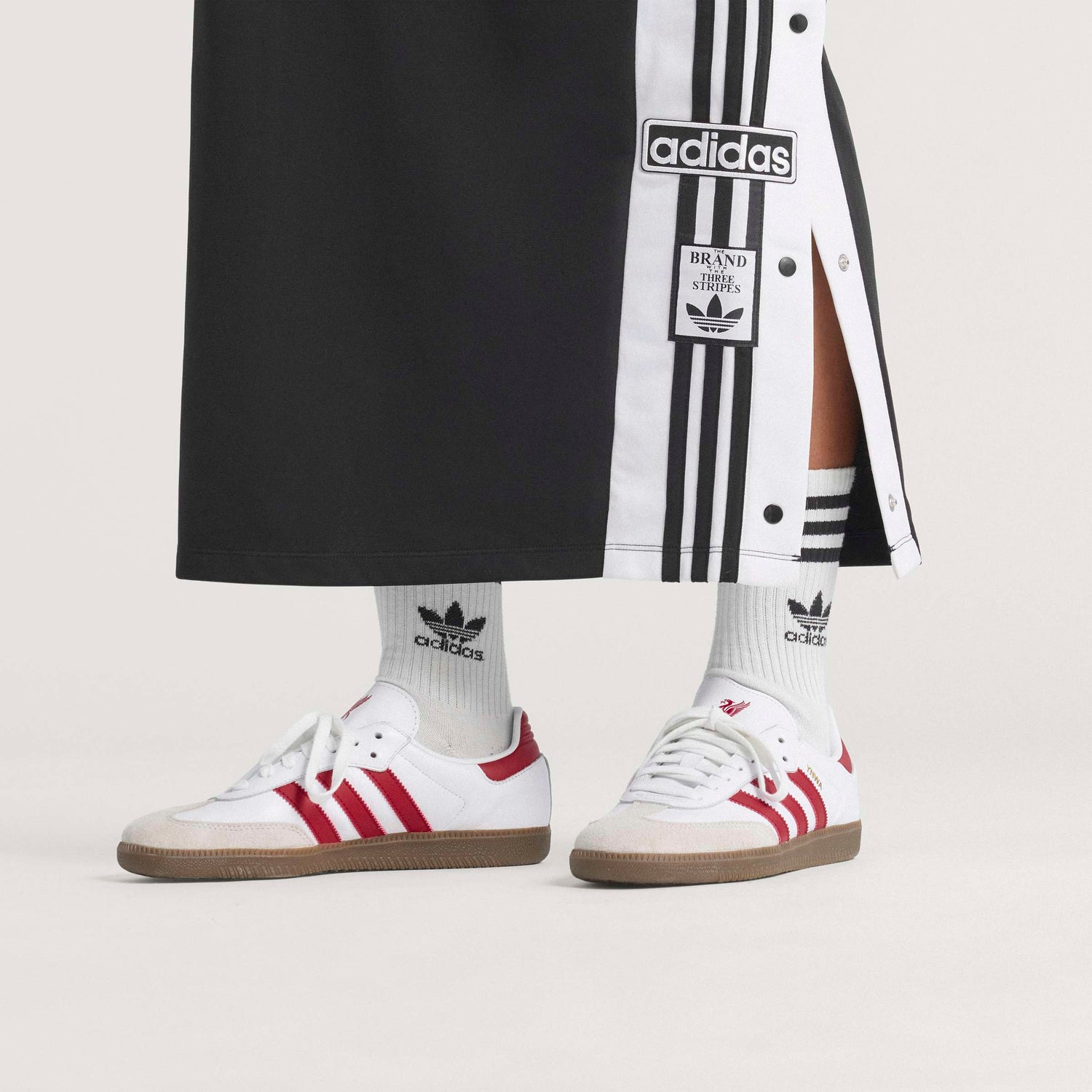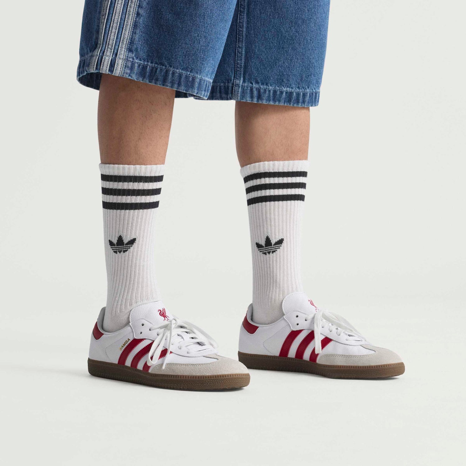 Created so Reds fans can roll with football style off the pitch. An adidas footwear icon, the Samba is famous for its soft leather upper and suede T-toe. This pair is finished in Liverpool FC's away colours and shows off a team crest on the heel tab so no one can mistake your football fandom.
