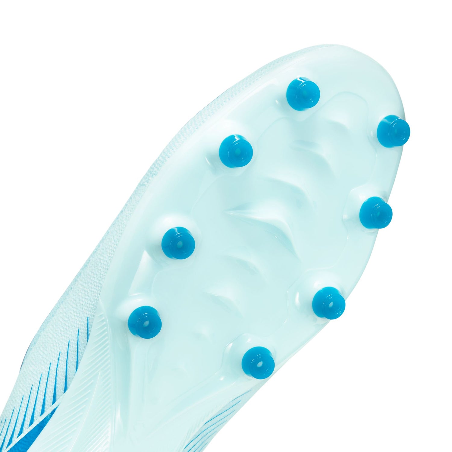 The wave-like traction pattern is a series of cascading studs, so it engages more surface area of the Air Zoom unit while also providing the appropriate amount of grip. The biggest stud is the same height as our traditional middle studs, so traction is not compromised. We paired the wave-like traction with evolved chevron and blade studs to help you stop when making quick cuts.