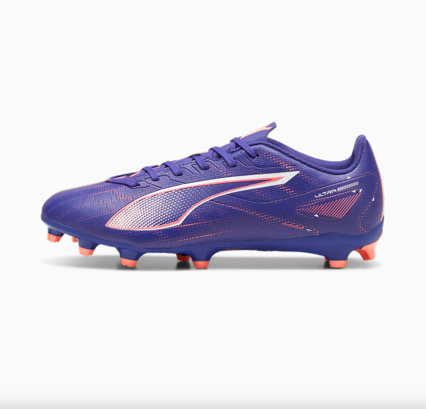 How fast is the ULTRA 5 PLAY? Buckle up. Perfect for those just starting to fall in love with the beautiful game, this version of the ULTRA comes with PUMA’s brand new SPEEDSYSTEM outsole and FastTrax stud design for optimal traction. These studs have three rounded studs on the side so you can switch between firm ground and artificial turf. Wherever you play, play at full speed.